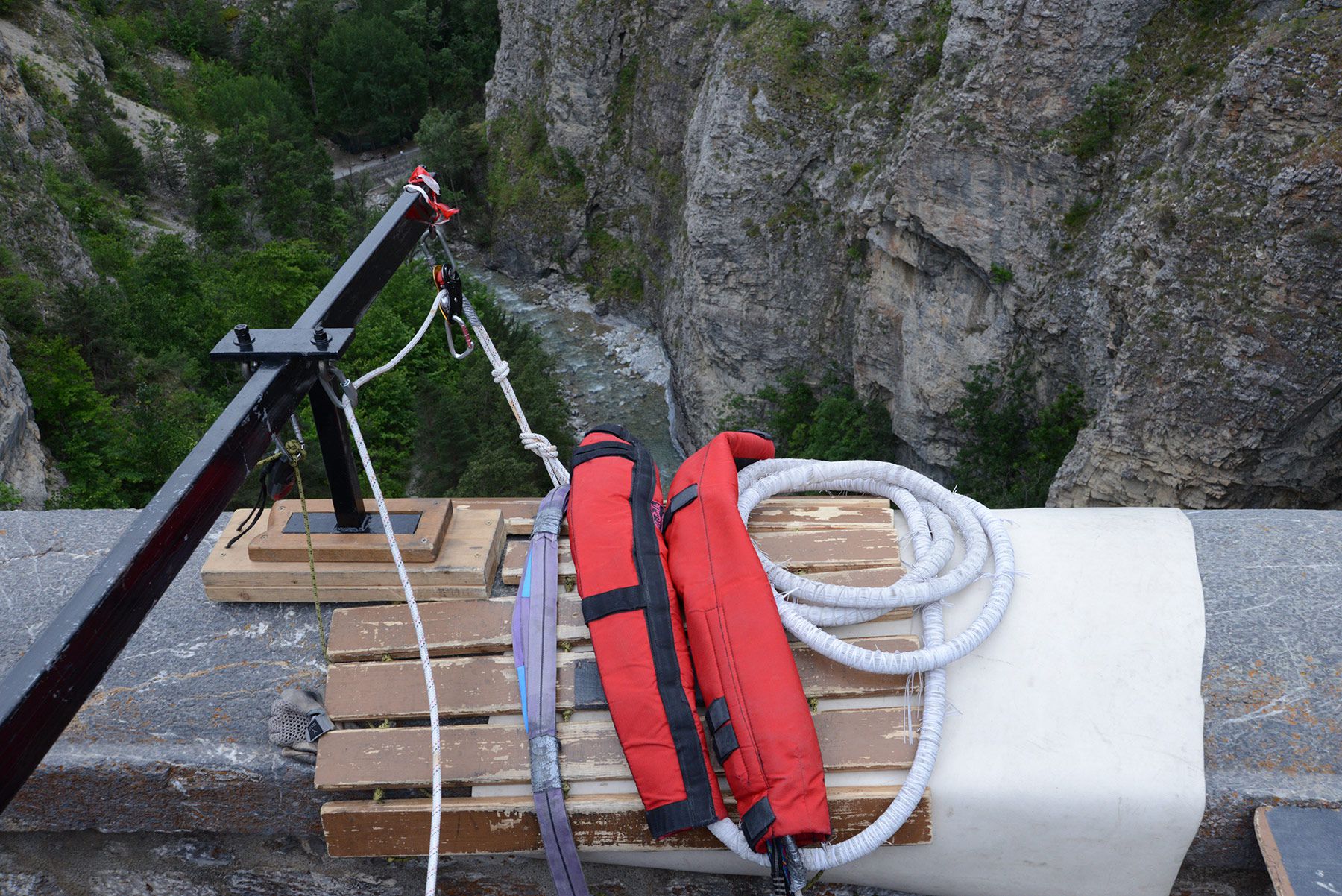 Pour obtenir l'agrément d'ouverture du site par la Direction Départementale de la Jeunesse et Sports des Hautes Alpes, notre équipe s'est installée durant l'été 2007 et a pratiqué le saut en élastique du Pont d'ASFELD, afin de fiabiliser le site.